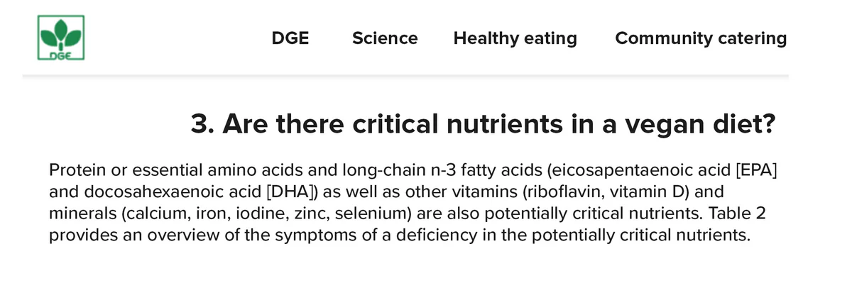 According to the Nutrition Department, amino acids are also considered critical nutrients in a vegan diet.