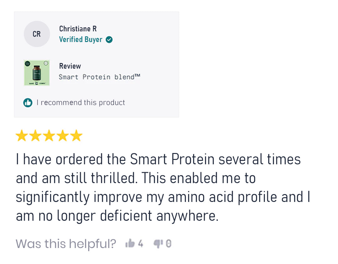 The focus should be on a healthy and varied diet at all times (regardless of the dietary supplement). Smart Protein naturally supports achieving daily amino acid requirements, so under-supply is unlikely.